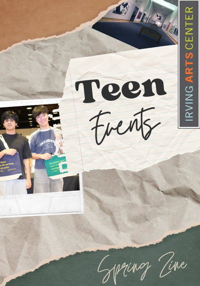 The Irving Arts Center Teen Ambassdors have published the very first edition of their Zine. In this inaugural Spring edition you can read all about events and opportunities, just for teens!