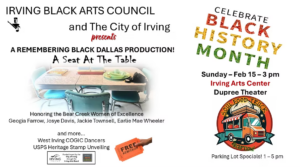 A Seat at the Table is A Remembering Black Dallas Production presented by the Irving Black Arts Council in partnership with the City of Irving